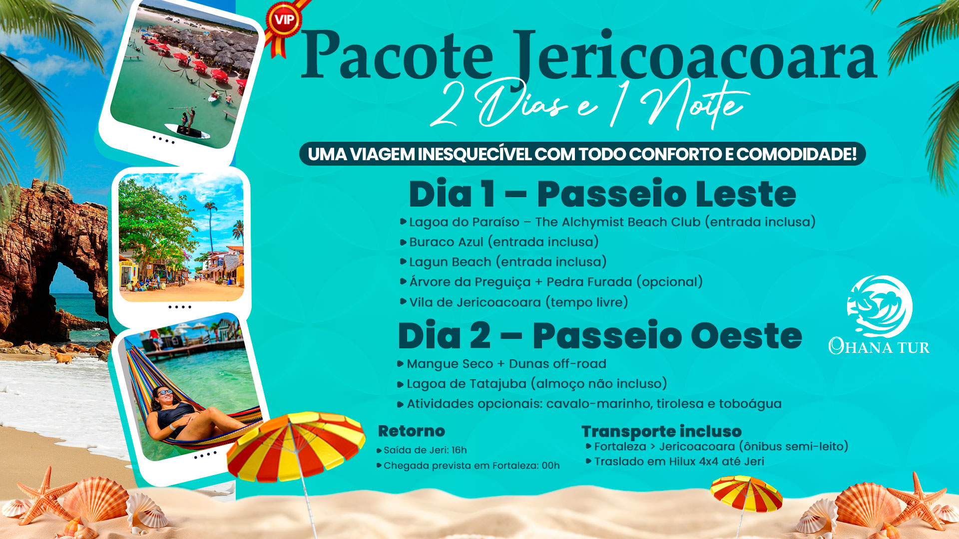 Pacote VIP Jericoacoara com 2 dias de passeios leste e oeste, lagoas paradisíacas, dunas e tempo livre para curtir Jeri!
